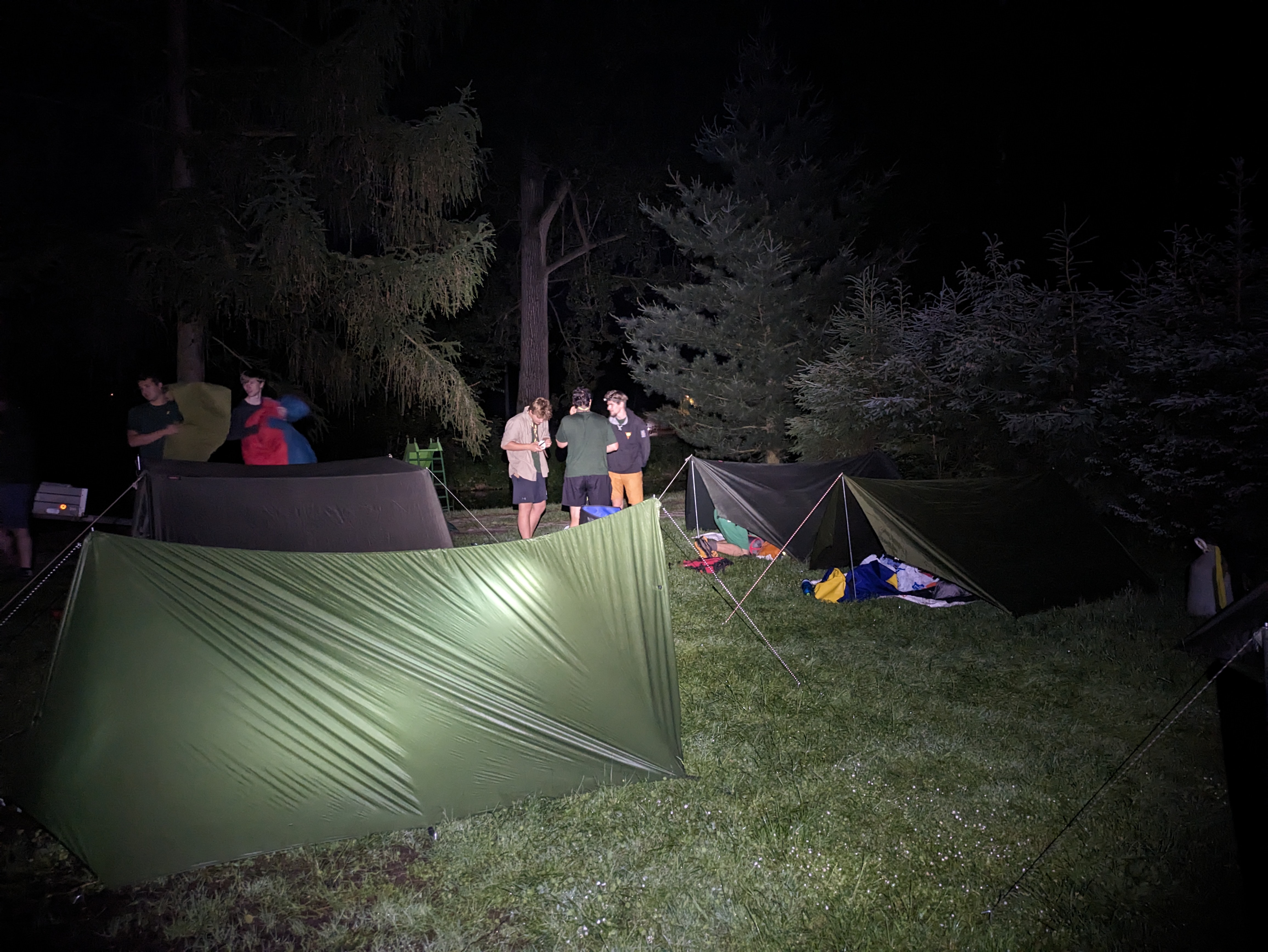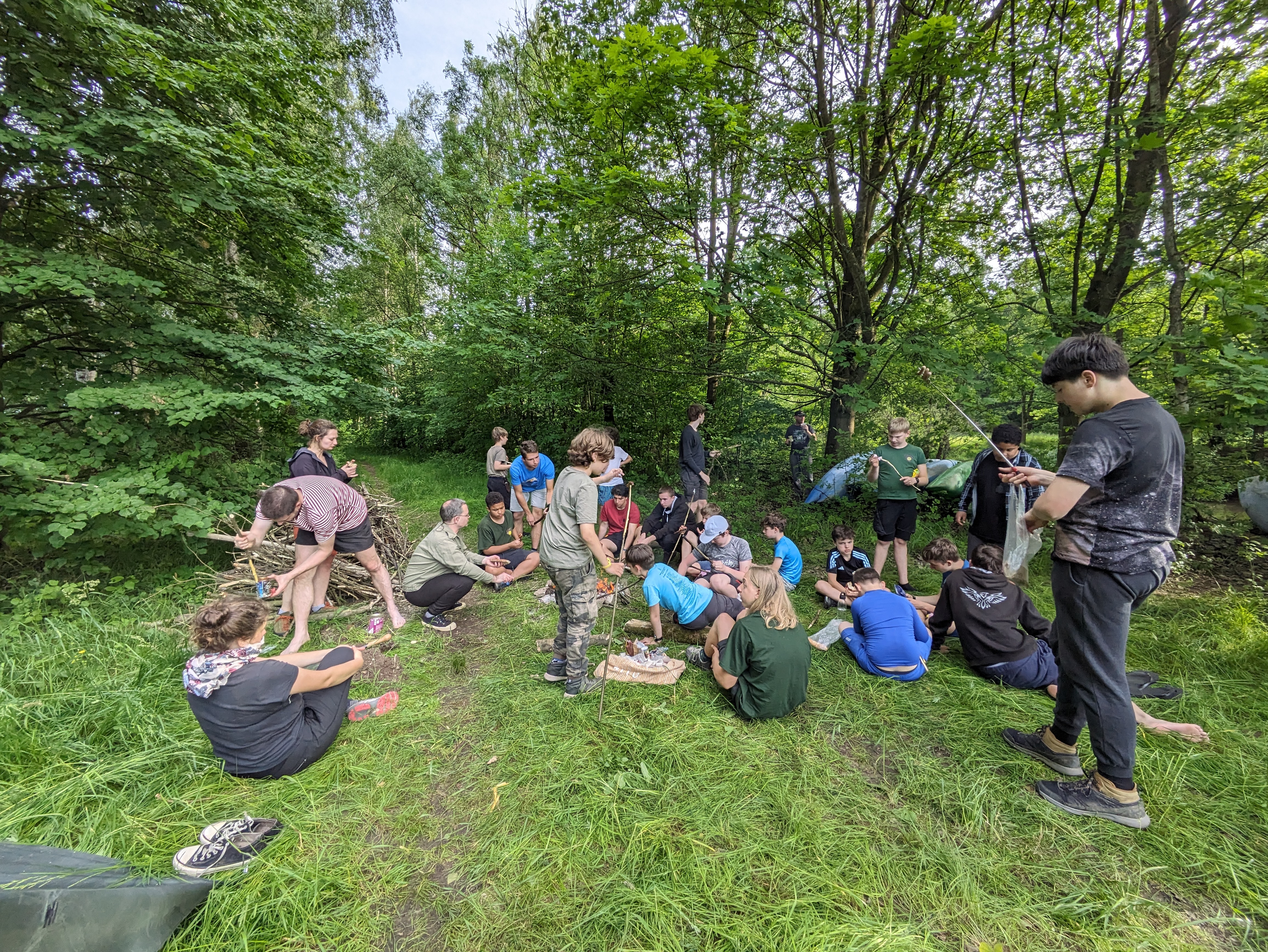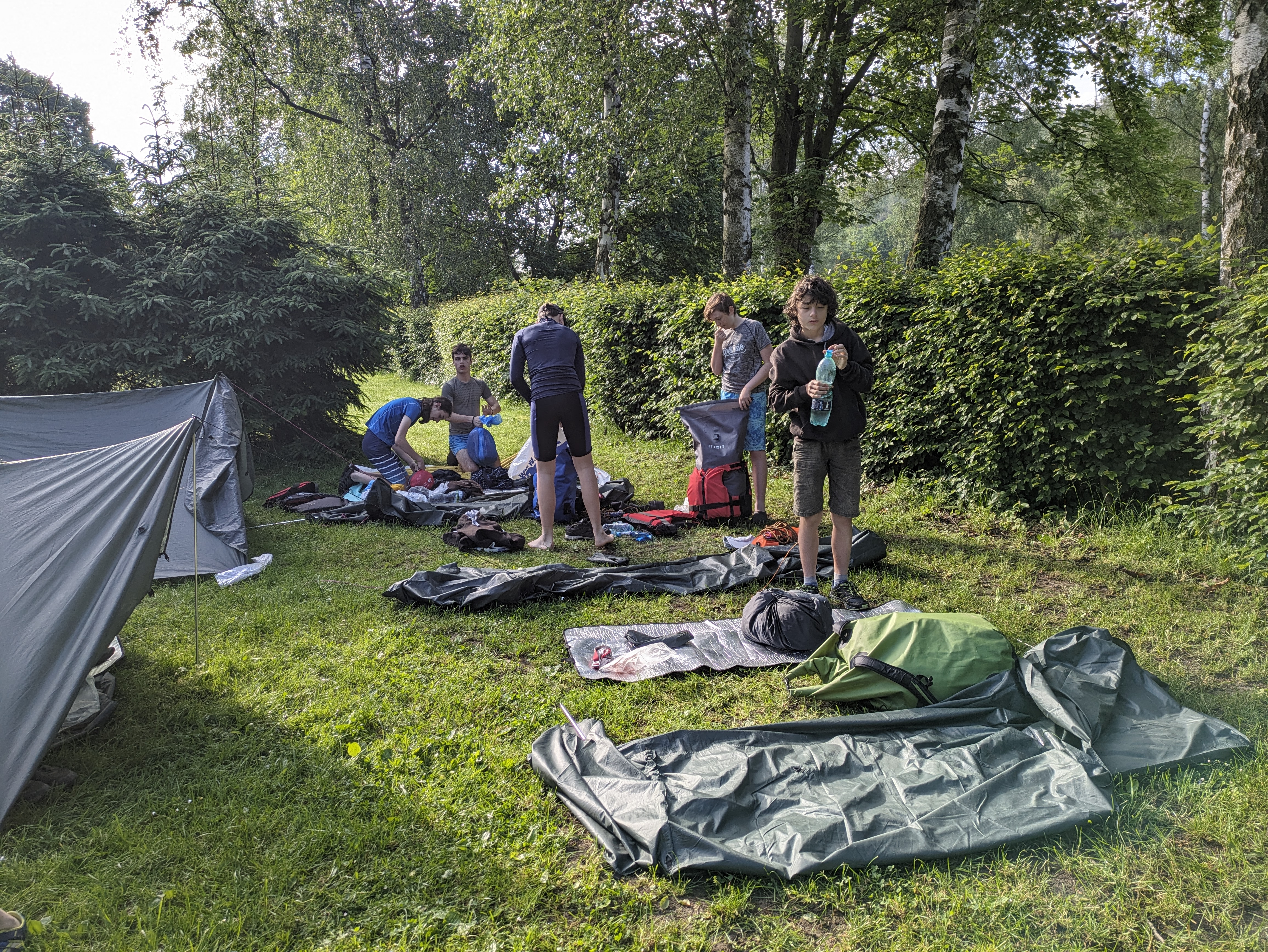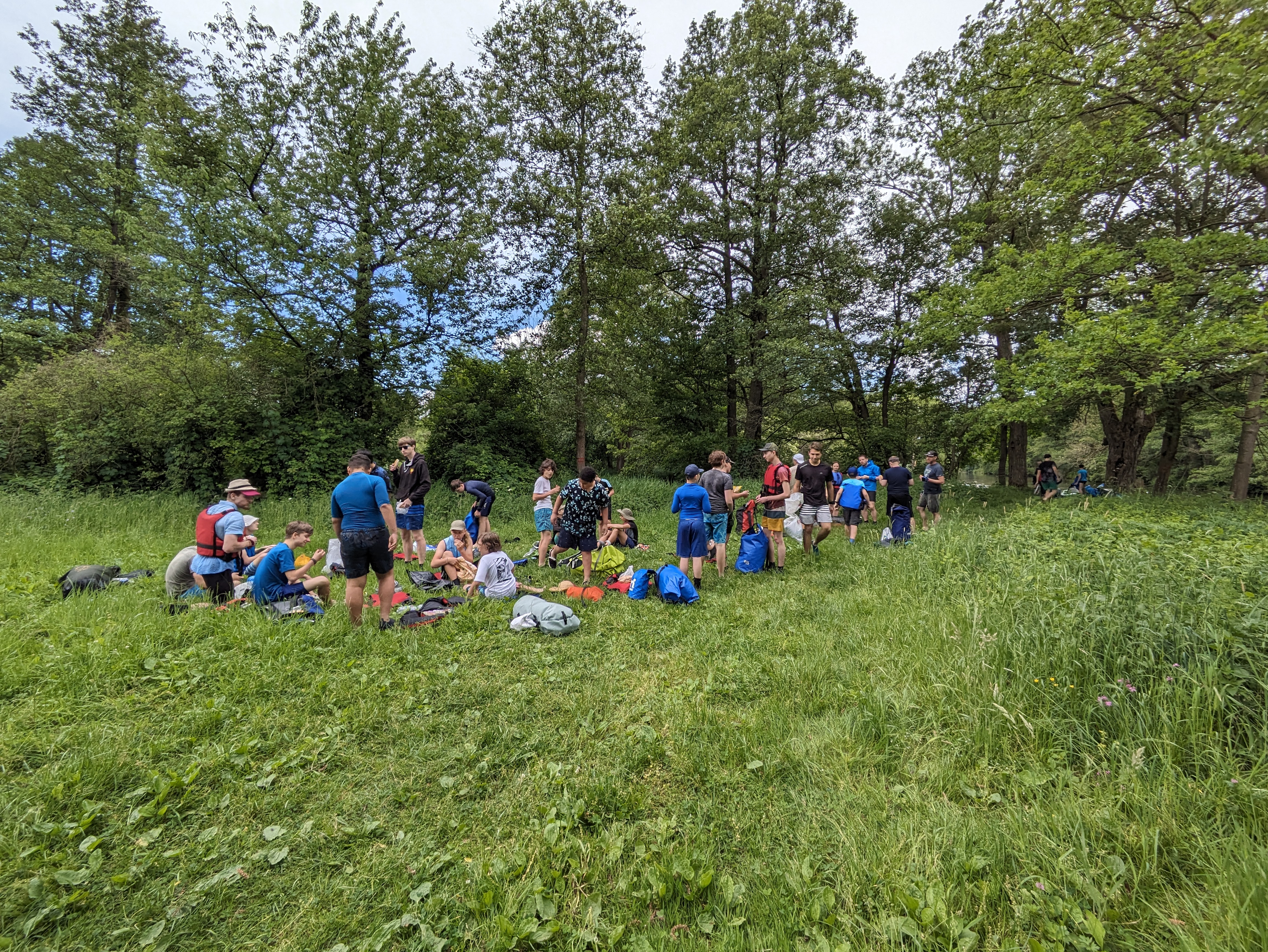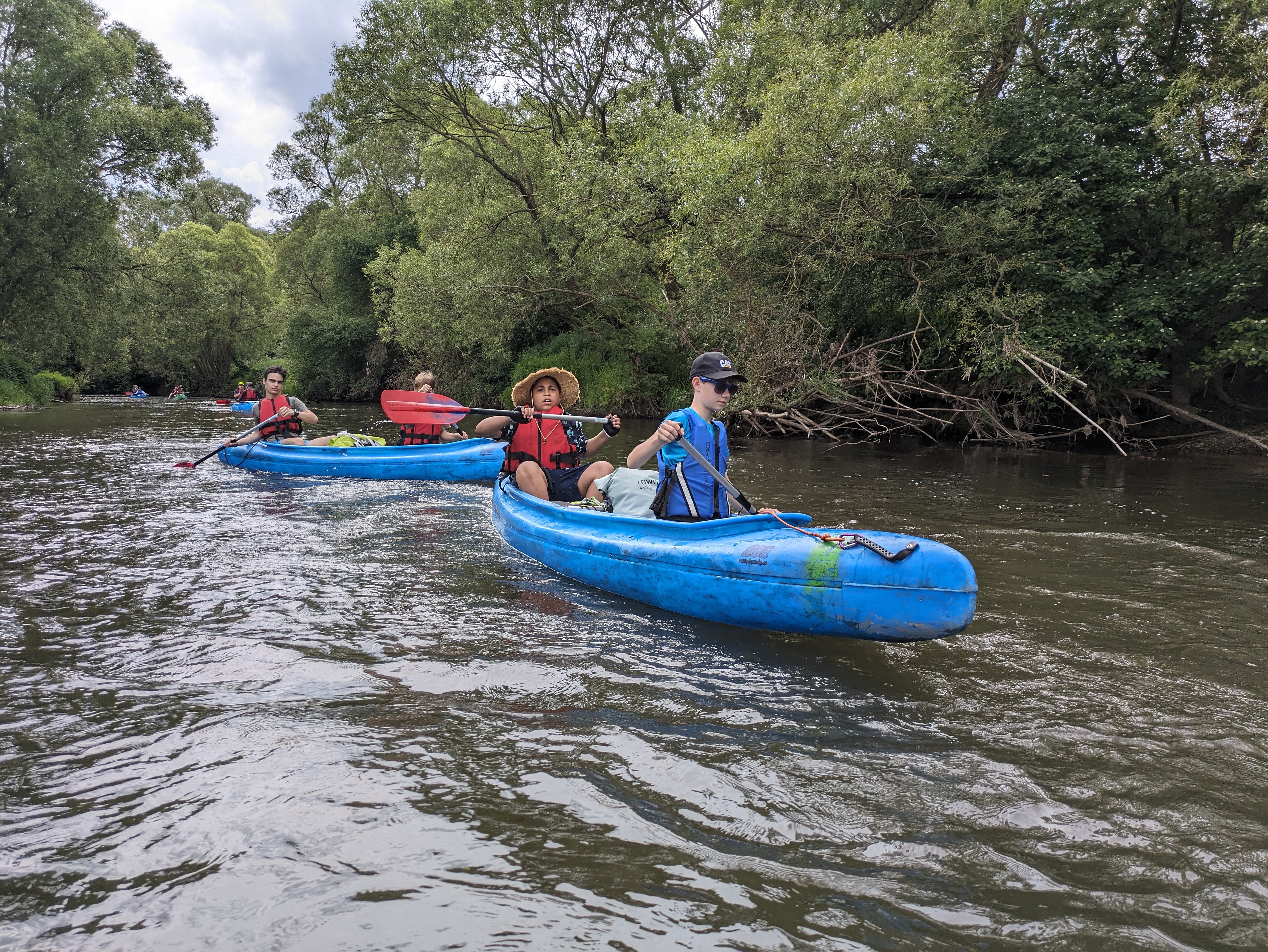 V pátek hrozila bouřka, a tak kvitujeme klidný začátek výpravy s jasnou hvězdnou oblohou. Stavbu Tarpů za deště jsme si užili na letošní Traperce. Spíme v kempu v Kostelci nad Orlicí, kde má sklad lodí i naše půjčovna. Ráno vyplouváme jako vždy v 9 hodin. I v sobotu se počasí drží, černo je na obzoru nad Hradcem Králové, ale nás všechny bouřky míjejí. Musím říct, že Orlice rozhodně nezklamala, spíš velmi příjemně překvapila. Očekávali jsme něco mezi Lužnicí ze Suchdola a Berounkou, ale vody je dost a někde teče docela rychle, navíc meandry, prudké zatáčky, vracáky a víry, občas podplouváme padlé stromy nebo z vody čouhají zrádné větve. Poměrně dost posádek se nedobrovolně koupalo, některé i vícekrát. Po Divoké Orlici plujeme na soutok s Tichou Orlicí před Týništěm. Stavíme pod mostem v Týništi, musíme nakoupit balenou pitnou vodu, ze soboty na neděli budeme spát na divoko a o žádném zdroji pitné vody nevíme. Roveři si vyzkoušeli odvážný skok z mostu do vody.